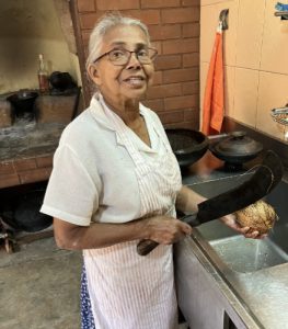 The kitchen therefore comes as a shock. A clay range with holes for four pots, fuelled by a wood fire under each. When the clay cracks, as it does from time to time, you repair it with cow dung. I wonder aloud whether this is just for the benefit of visitors. No, though there is an electric oven elsewhere for Prema's celebrated cakes. A grey haired lady with a twinkle in her eye, she has been with the family for 40 years. While Lalith and Nirmala may beg to differ, this kitchen is undoubtedly Prema's. She is quietly charming to everyone.
