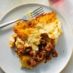 Allow to cool. Transfer to a pie dish. On telly you'll see the poncy chefs put the mash into a bag and pipe it over the top. No need. Spoon on generous chunks and spread evenly with a fork.